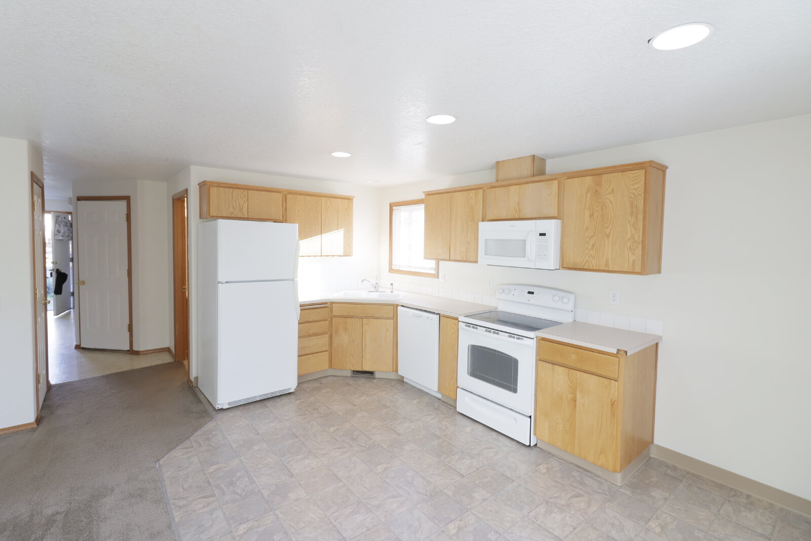 The kitchen is equipped with a glass top stove, Dishwasher, Microwave, and disposal.